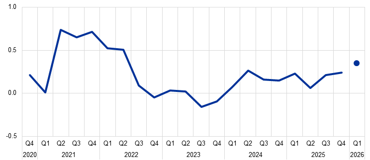 The employment outlook remained lacklustre amid a strong focus on cost-cutting and increasing AI-enabled work process optimisation. Firms in parts of the manufacturing sector, particularly in the chemicals and automotive industries, and mainly in core euro area countries, continued to make sizeable job cuts owing to sustained weak demand, high costs and intensifying import competition. Companies in these sectors were consolidating production, relocating functions to lower cost regions and restructuring white-collar and R&D roles, drawing on AI tools and automation to reap efficiency gains. By contrast, contacts in consumer services, particularly in hospitality and air travel, reported rising employment tied to growing demand. In most other sectors, contacts reported employment being rather flat, in part because the increasing integration of AI into work processes had enabled businesses to grow without needing more staff. AI was also reshaping and replacing some white-collar roles, resulting in a difficult job market for graduates. Recruitment challenges persisted, however, for many specialised roles, particularly in sectors such as energy, construction, cybersecurity, aerospace and defence. Placement agencies said that temporary placement activity seemed to have reached a trough, but permanent hiring had continued to fall. The consensus outlook for 2026 was for a return to modest staffing growth, but there were no clear indications this had yet begun.