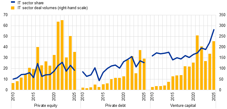 See the box entitled “Private markets: risks and benefits from financial diversification in the euro area”, Financial Stability Review, ECB, May 2025, and the special feature entitled “Private markets, public risk? Financial stability implications of alternative funding sources”, Financial Stability Review, ECB, May 2024.