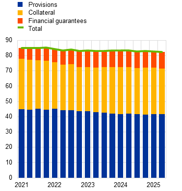 The ability of banks to absorb further asset quality deterioration is supported by strong profitability and ample capital and liquidity buffers. Euro area banks maintained robust return on equity levels, averaging close to 10% in the first half of 2025, albeit with some cross-country variation (see Section 3.1). Banks’ resilience has also been bolstered by capital and liquidity ratios that are well above regulatory requirements. Maintaining this resilience is essential in the context of elevated geopolitical and trade uncertainty. The 2025 EU-wide stress test confirmed that euro area banks are adequately capitalised to withstand severe shocks, not least thanks to the macroprudential policy measures implemented by the authorities in recent years. As such, releasable capital buffer requirements should be preserved, with targeted increases considered in countries where releasable buffers are low, provided such measures do not pose procyclicality risks. Proper calibration of borrower-based measures is also essential to uphold sound lending standards (see Section 3.5). The prevailing regulatory and supervisory framework, including in the macroprudential remit, has been effective in safeguarding financial stability. There is, however, scope for making the framework more efficient and effective by reducing unwarranted complexities, without compromising bank resilience or undermining compliance with the Basel framework, and by completing the banking union.