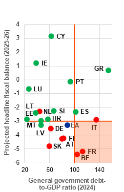 Euro area countries face divergent fiscal paths, with some struggling to reduce deficits and meet rising defence spending targets