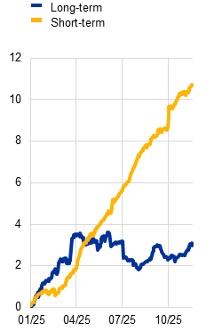 (1 Jan.-17 Nov. 2025, left-hand scale: percentages, right-hand scale: index) | (Q1 2022-Q3 2025, percentages) | (Jan. 2021-Oct. 2025, percentages) |
