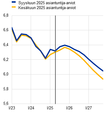 EKP:n asiantuntijoiden arviot | Syyskuu 2025 | 1,2 | 1,0 | 1,3 | 2,1 | 1,7 | 1,9 | 2,4 | 1,9 | 1,8 |