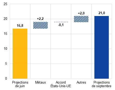 Hypothèses relatives aux taux effectifs des droits de douane américains sur les biens dans les projections de septembre 2025 par rapport aux projections de juin 2025