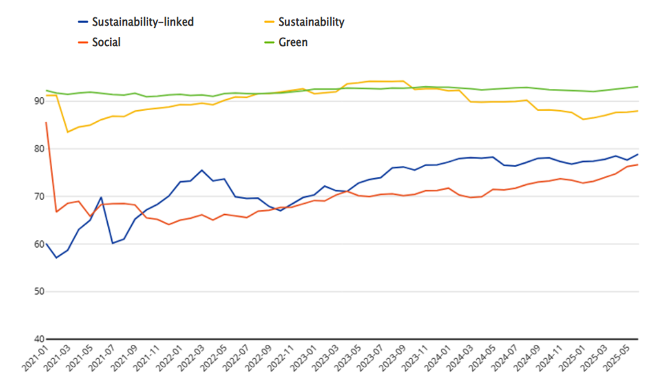 This latest update, released in November 2025, further expands the scope of the indicators with new aggregates on sustainable debt securities issuances. These aggregates provide breakdowns by original maturity, currency of denomination and interest rate type, offering a more granular view of the market. In doing so, the new breakdowns also address the reporting requirements in the context of the G20 Data Gaps Initiative Recommendation 4 on Climate Finance, supporting the availability of comparable data on sustainable finance across the G20 economies.